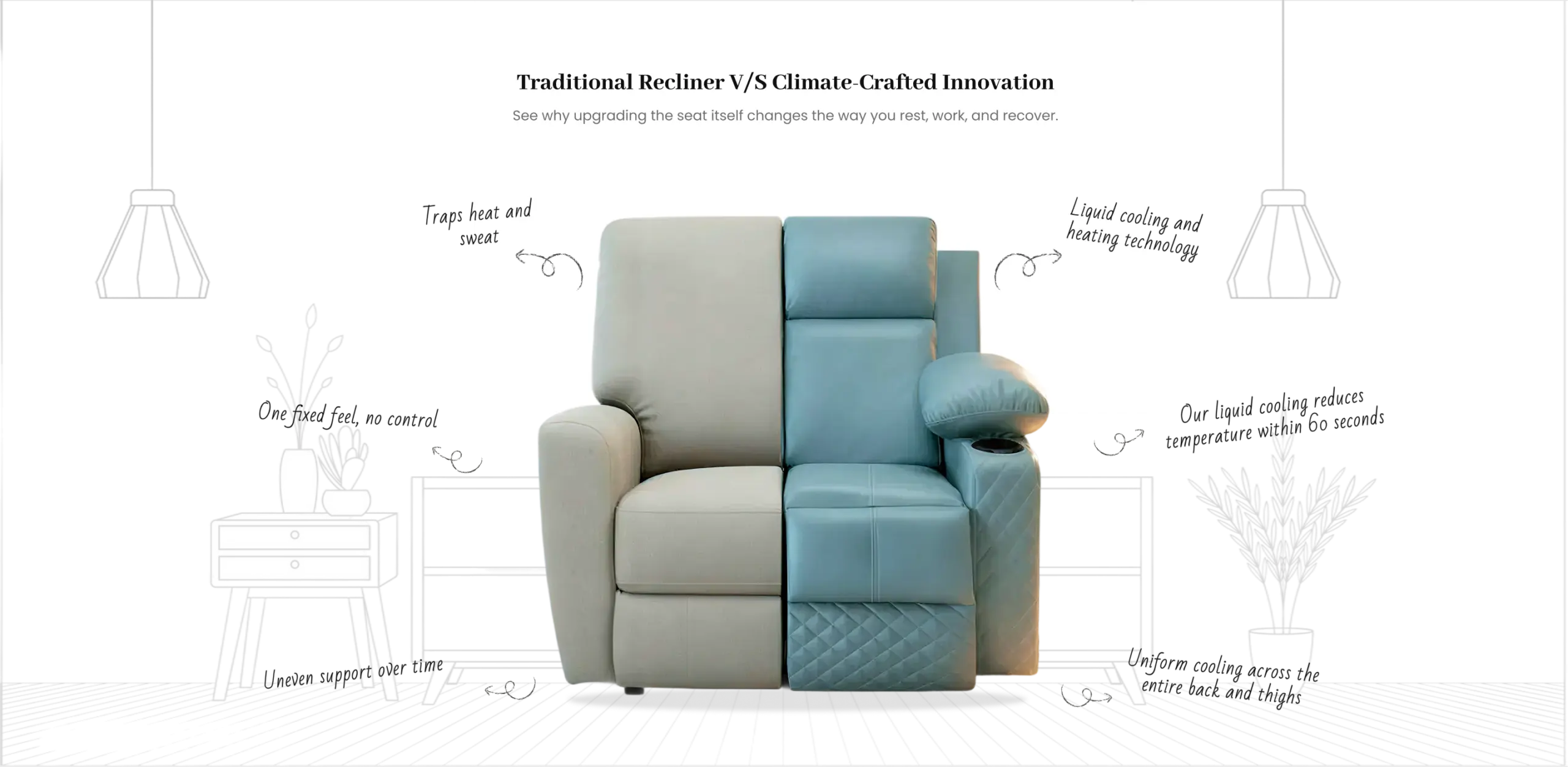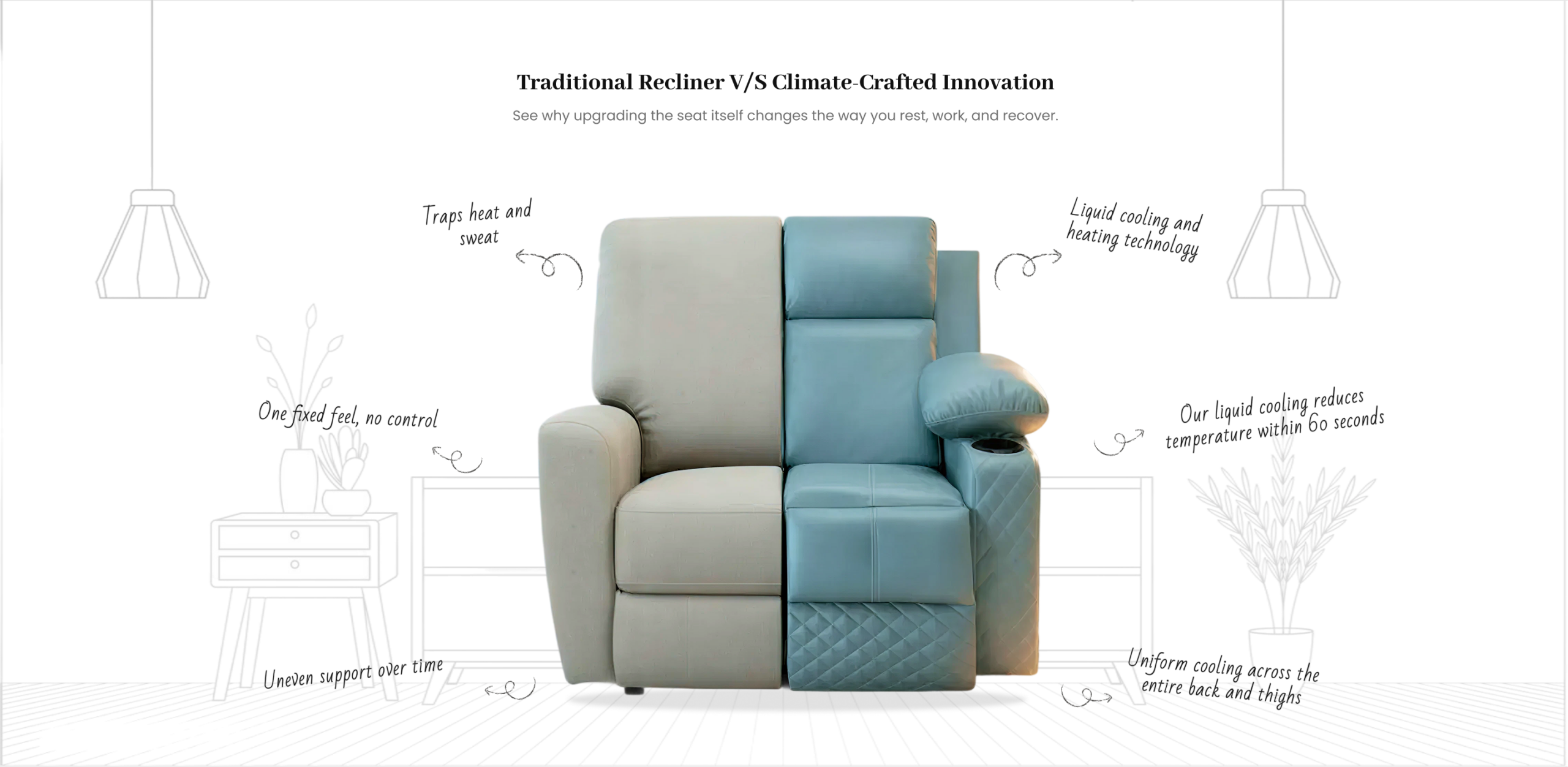 Design‑first recliners and sofas with hidden climate tech. Stay cool through IPL marathons and warm during late‑night reading, all from the same seat.